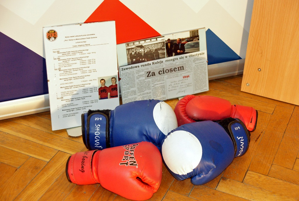 Miłym akcentem środowego wieczoru było przekazanie pamiątek związanych z boksem. Uczynił to Arkadiusz Paturej. Dzięki temu do bogatej kolekcji bokserskiej trafiły dwie pary rękawic oraz oprawione wycinki prasowe i wykaz medali zdobytych przez zawodników PIRS Olsztyn w Mistrzostwach Polski Seniorów w Kick-boxingu. Trenerem i założycielem sekcji był właśnie Arkadiusz Paturej.